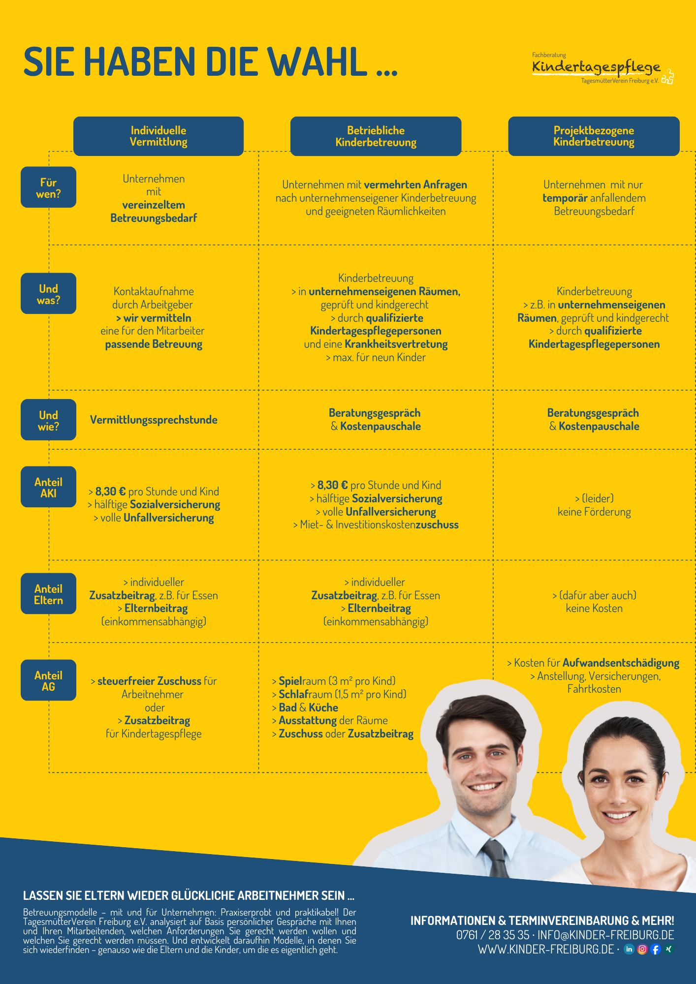 Praxiserprobt und praktikabel! Der TagesmütterVerein Freiburg e.V. analysiert auf Basis persönlicher Gespräche mit Ihnen und Ihren Mitarbeitenden, welchen Anforderungen Sie gerecht werden wollen und welchen Sie gerecht werden müssen. Und entwickelt daraufhin Modelle, in denen Sie sich wiederfinden – genauso wie die Eltern und die Kinder, um die es eigentlich geht.